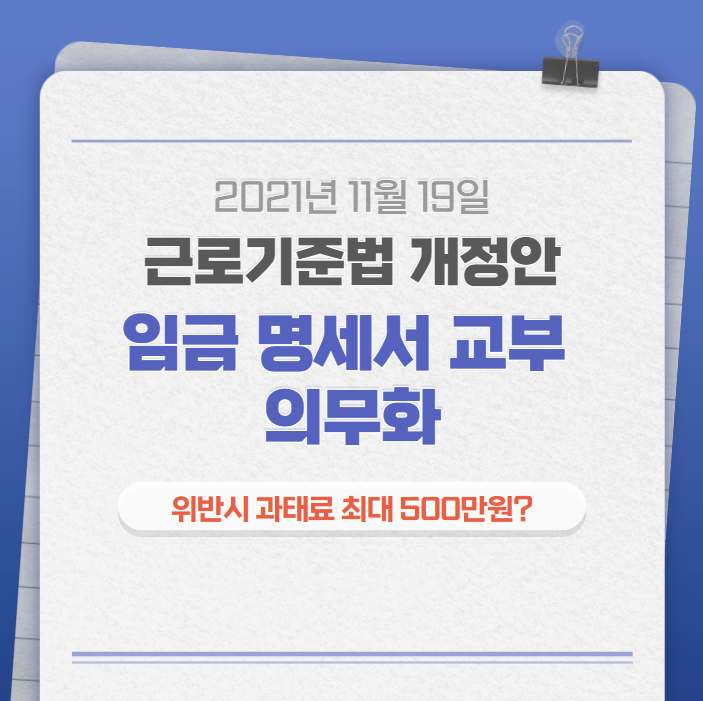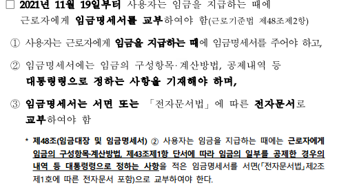작년 2021.11.19일 근로기준법 개정으로 인해 사업주의 임금명세서 교부 의무화가 되었다는 사실을 알고 계셨나요?